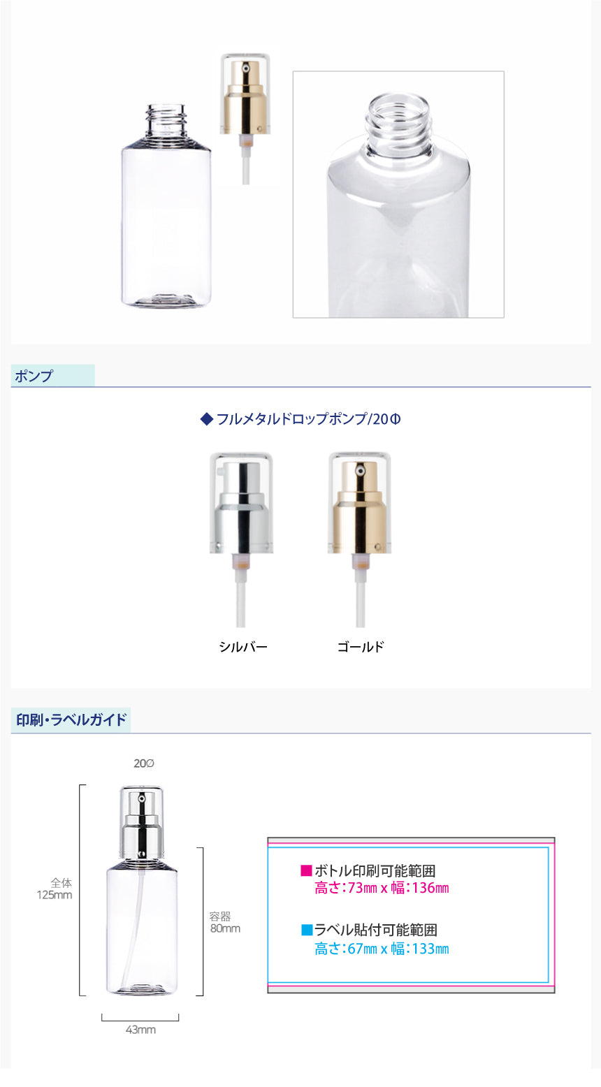 容量:100ml / 口径 : 20φ / 高さ:125mm / 直径 : 43mm
