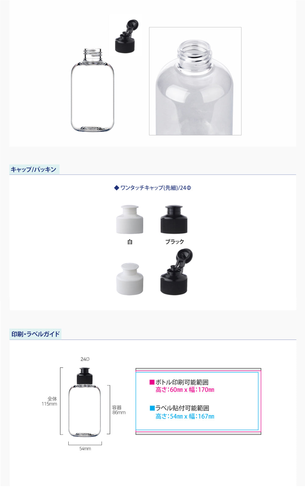 L) ワンタッチキャップボトル(先細) CO150ml_PET