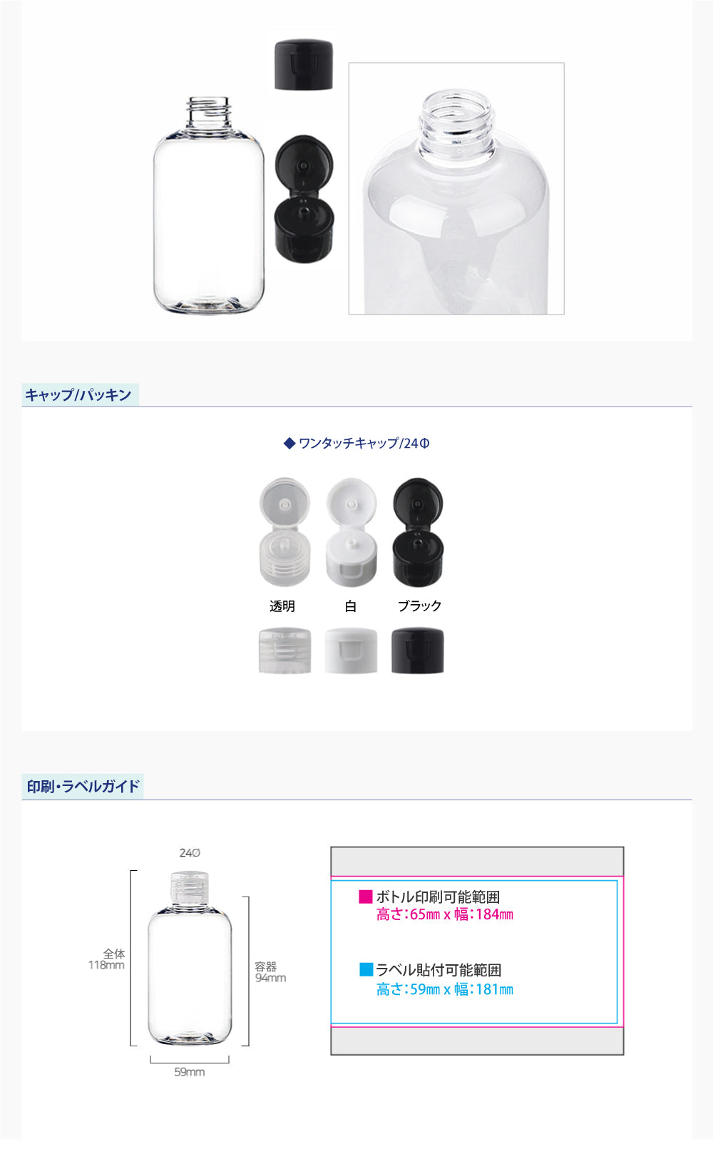 容量:200ml / 口径 : 24φ / 高さ:118mm / 直径 : 59mm