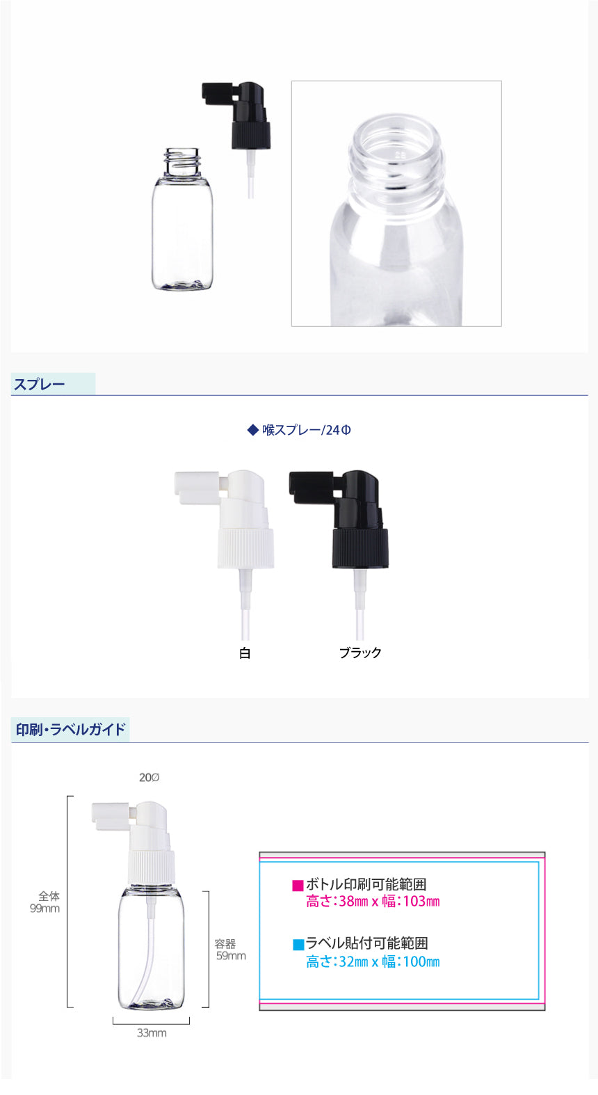 容量:40ml / 口径 : 20φ / 高さ:99mm / 直径 : 33mm