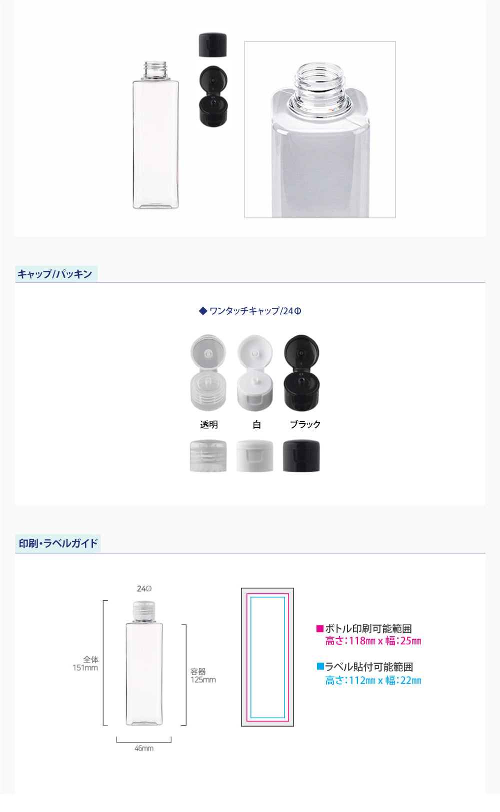 L) ワンタッチキャップボトル(角型) S200ml_PET