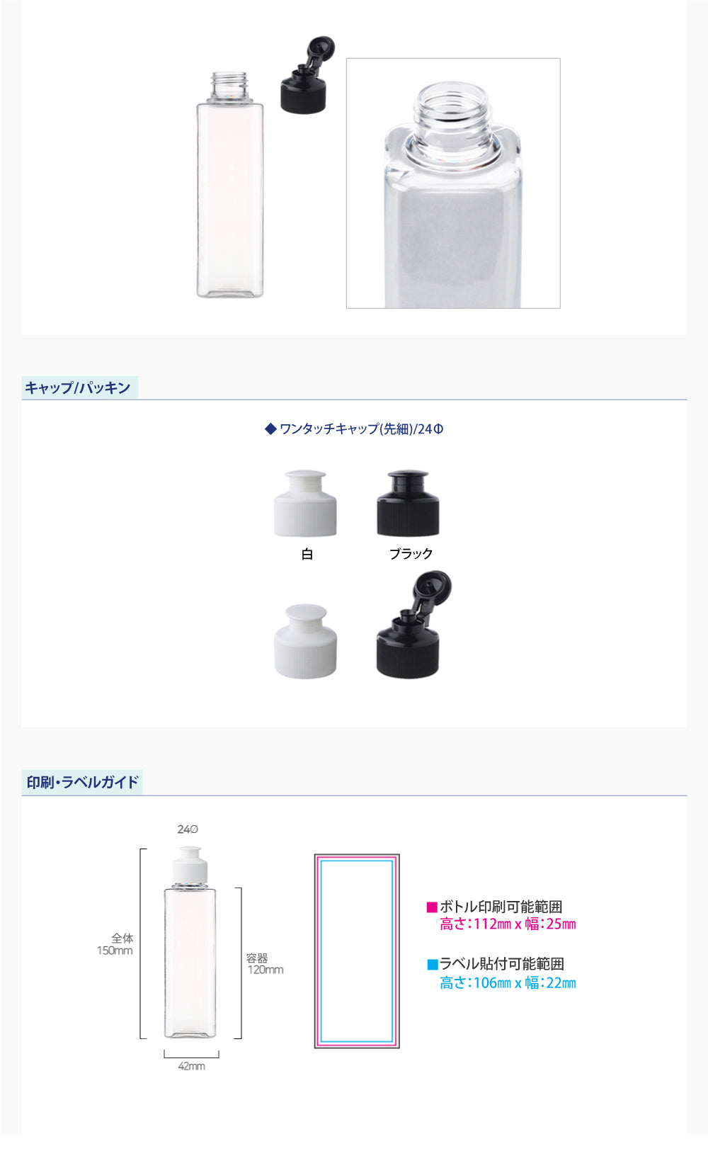 L) ワンタッチキャップボトル(先細・角型) S150ml_PET