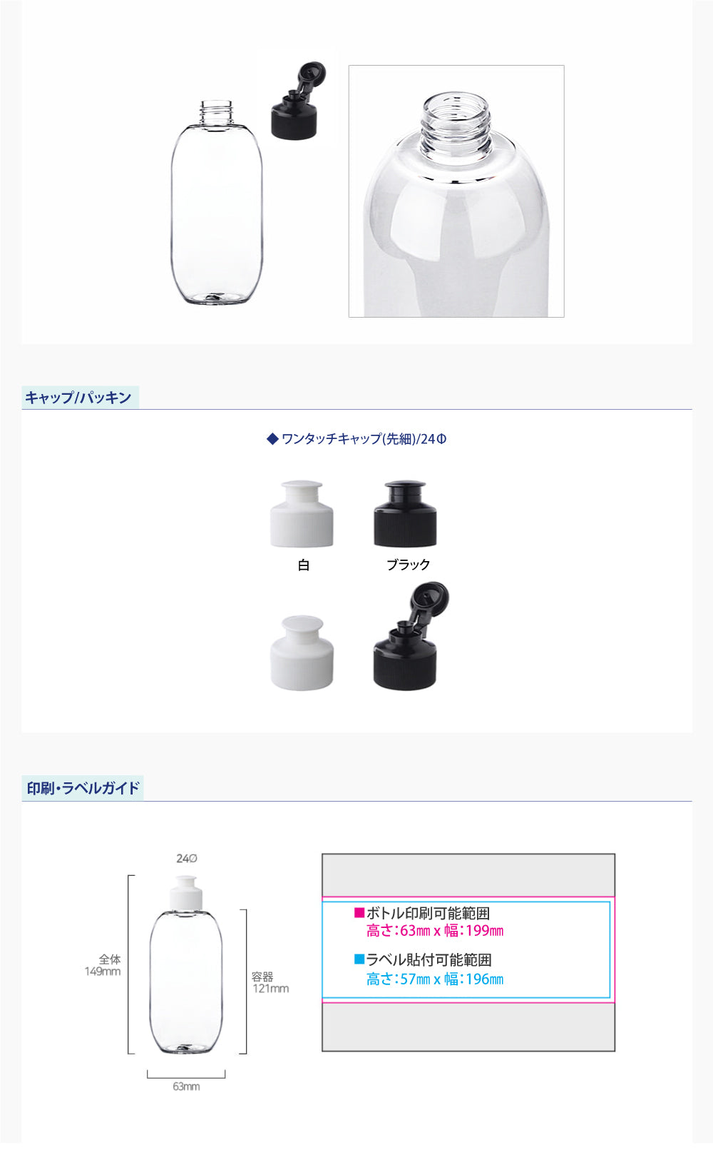 容量:300ml / 口径 : 24φ / 高さ:149mm / 直径 : 63mm