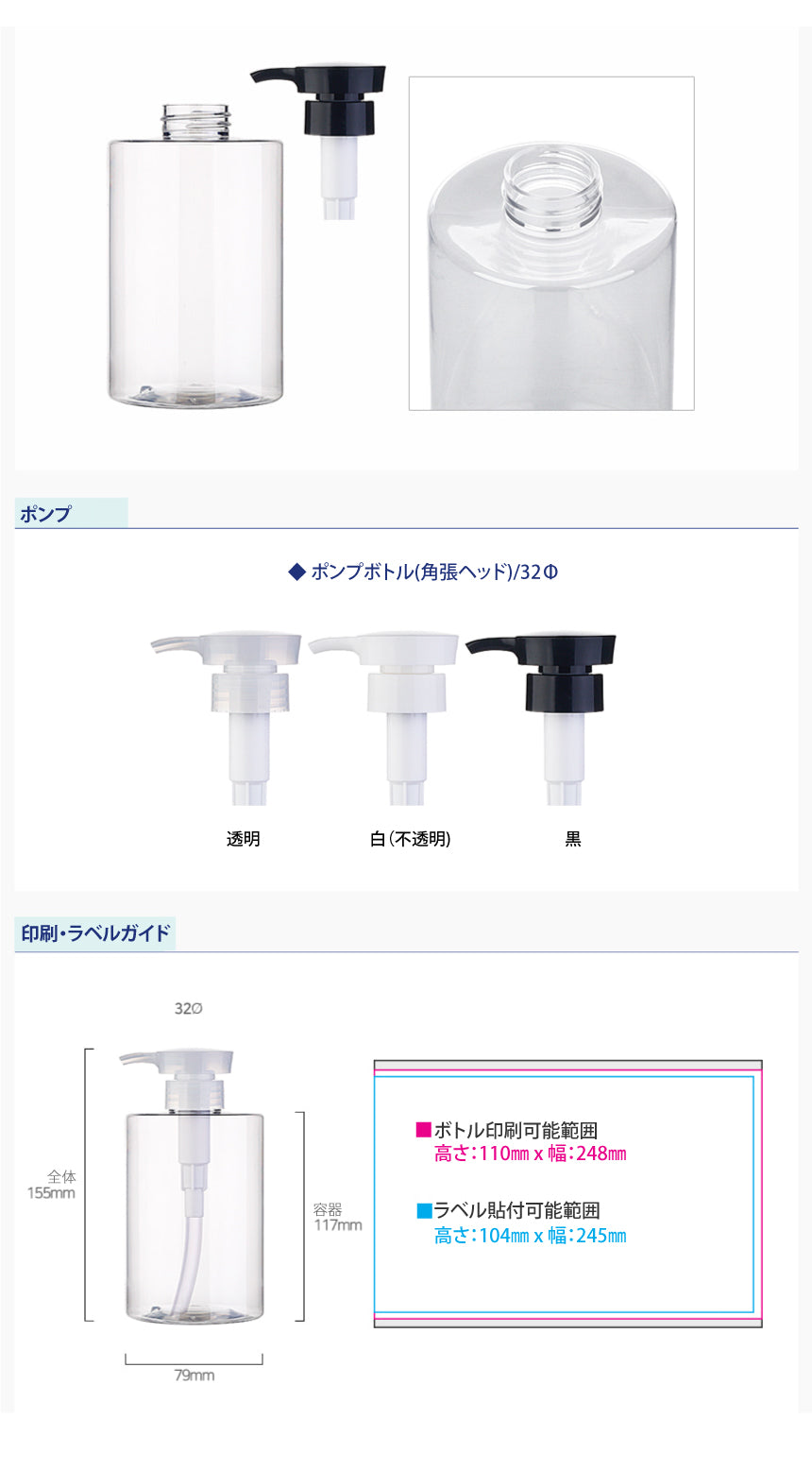 L) ポンプボトル(角張ヘッド) CS500ml_PET