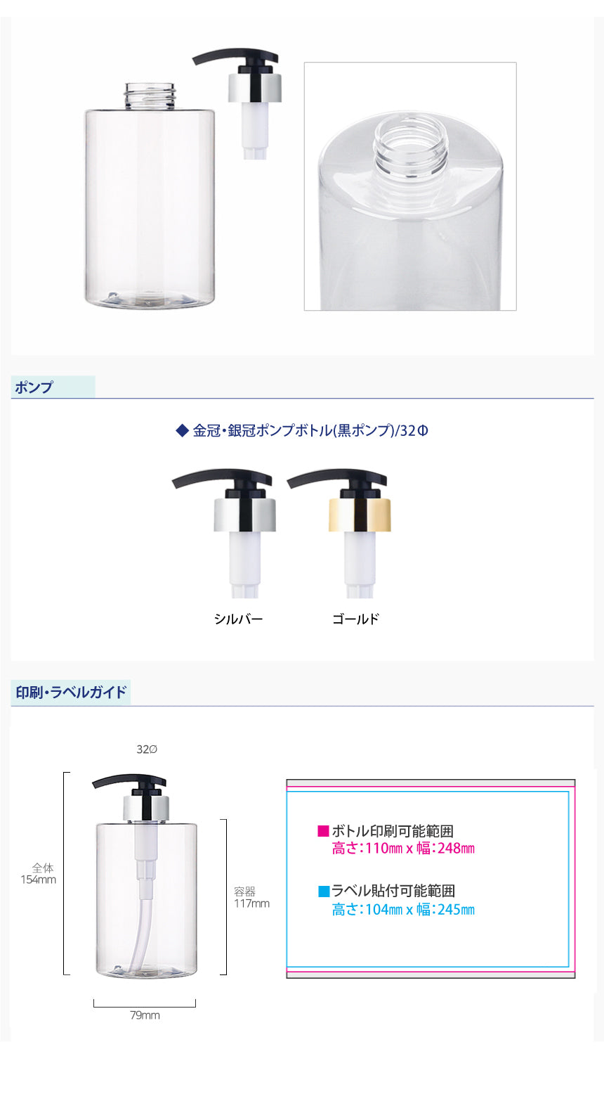 L) 金冠・銀冠ポンプボトル(黒ポンプ) CS500ml_PET