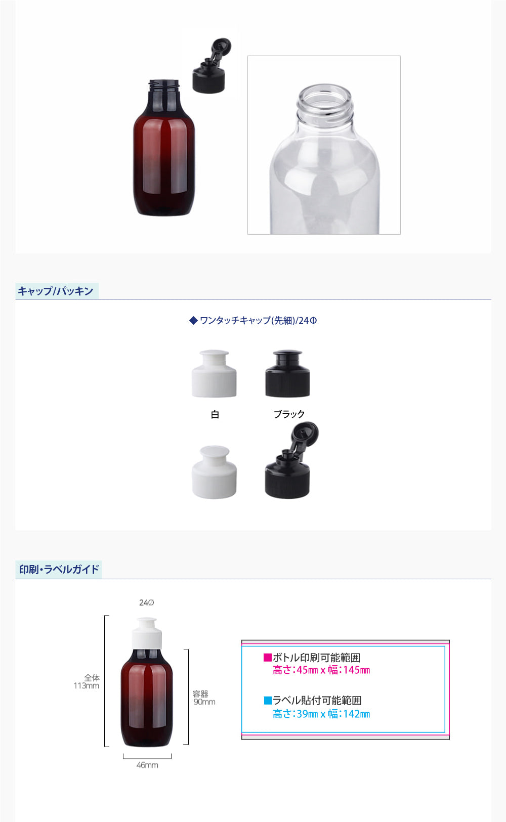 容量:100ml / 口径 : 24φ / 高さ:113mm / 直径 : 46mm