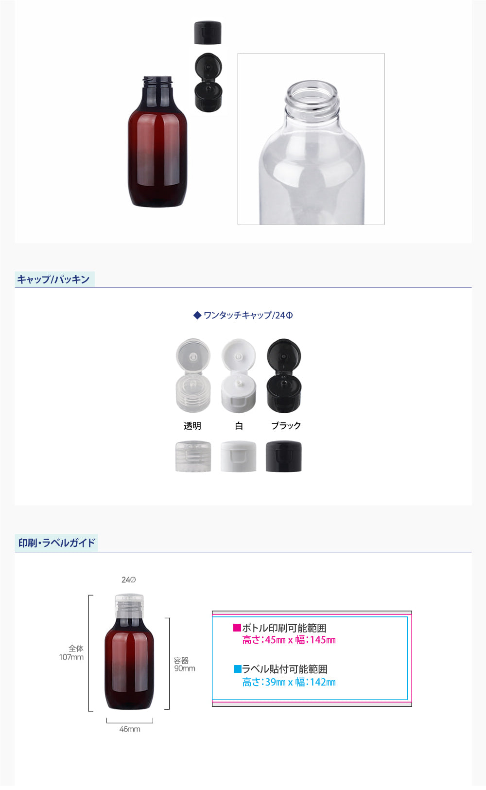 容量:100ml / 口径 : 24φ / 高さ:107mm / 直径 : 46mm