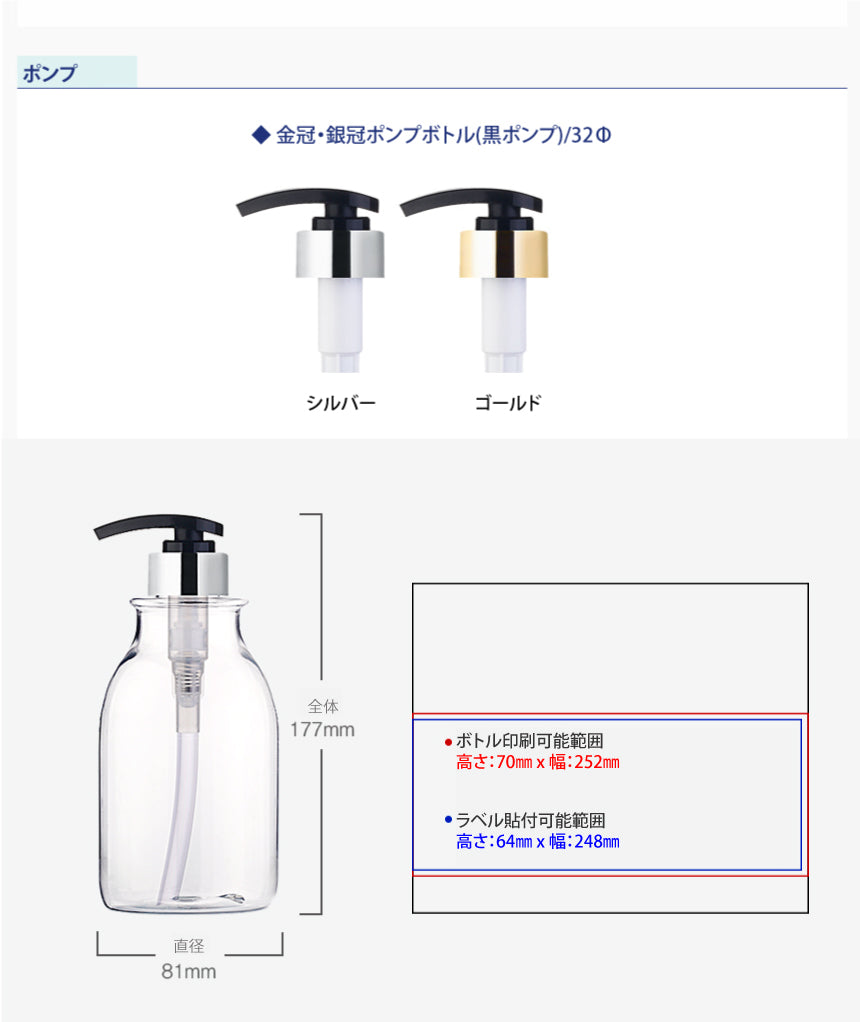 L) 金冠・銀冠ポンプボトル(黒ポンプ) CRS500ml_PET