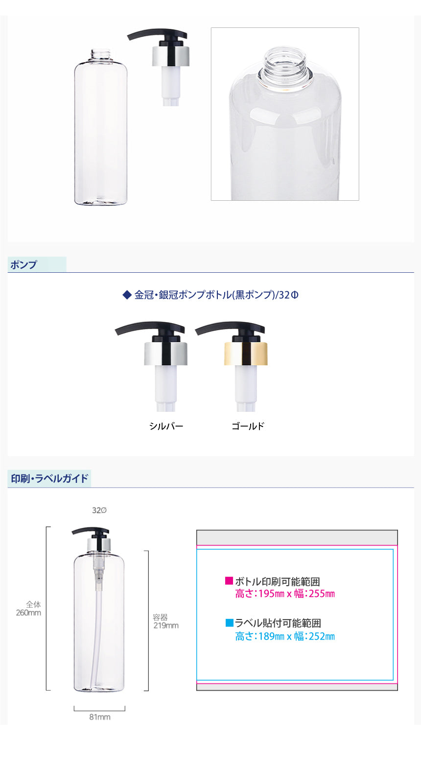 L) 金冠・銀冠ポンプボトル(黒ポンプ) CR1000ml_PET
