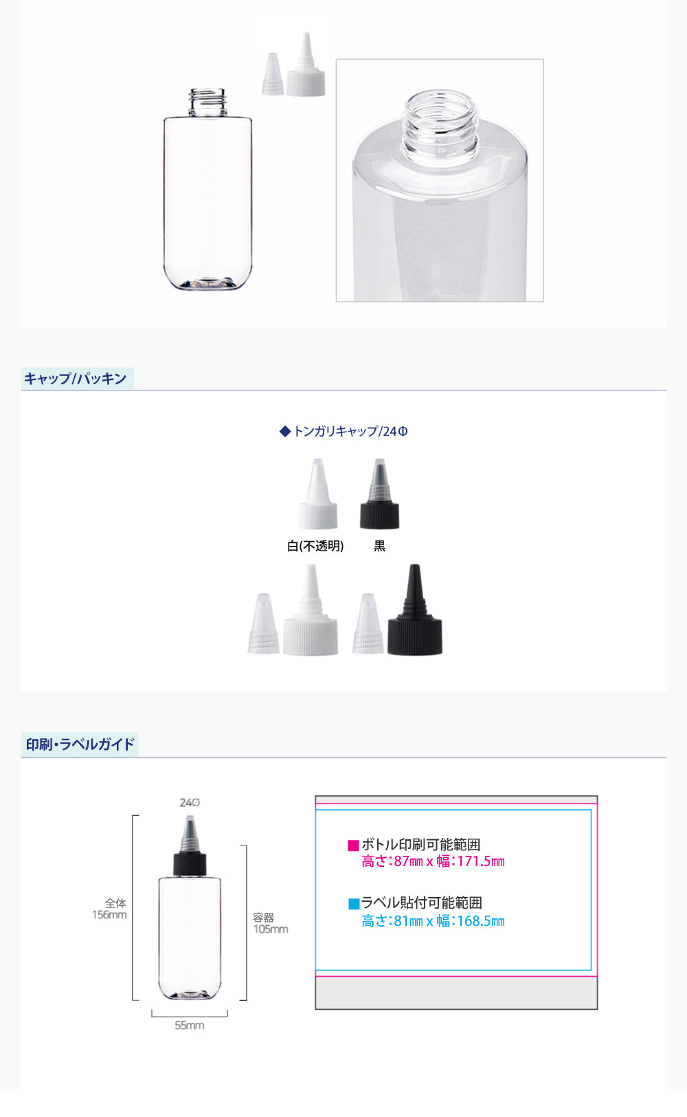 容量:200ml / 口径 : 24φ / 高さ:156mm / 直径 : 55mm