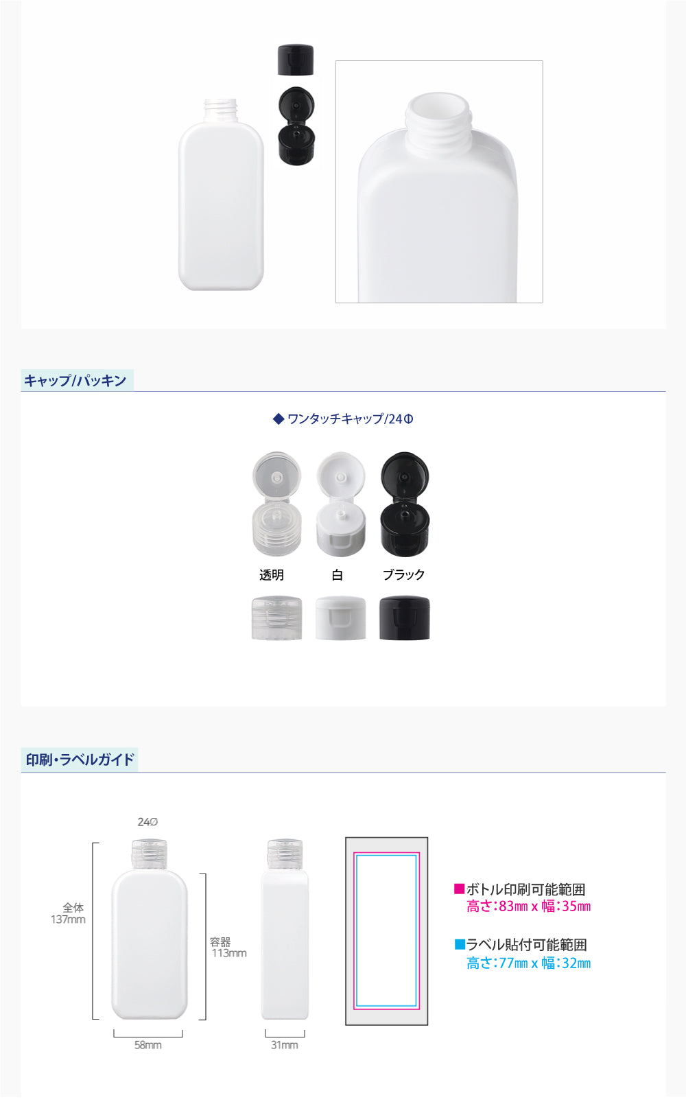 容量:150ml / 口径 : 24φ / 高さ:137mm / 幅 : 58mm / 奥行 : 31mm