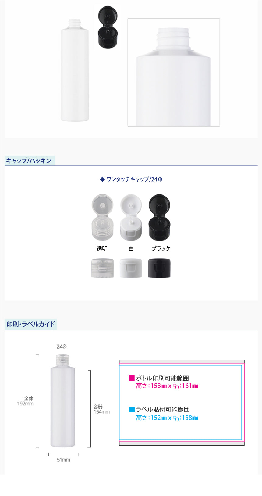 容量:300ml / 口径 : 24φ / 高さ:192mm / 直径 : 51mm