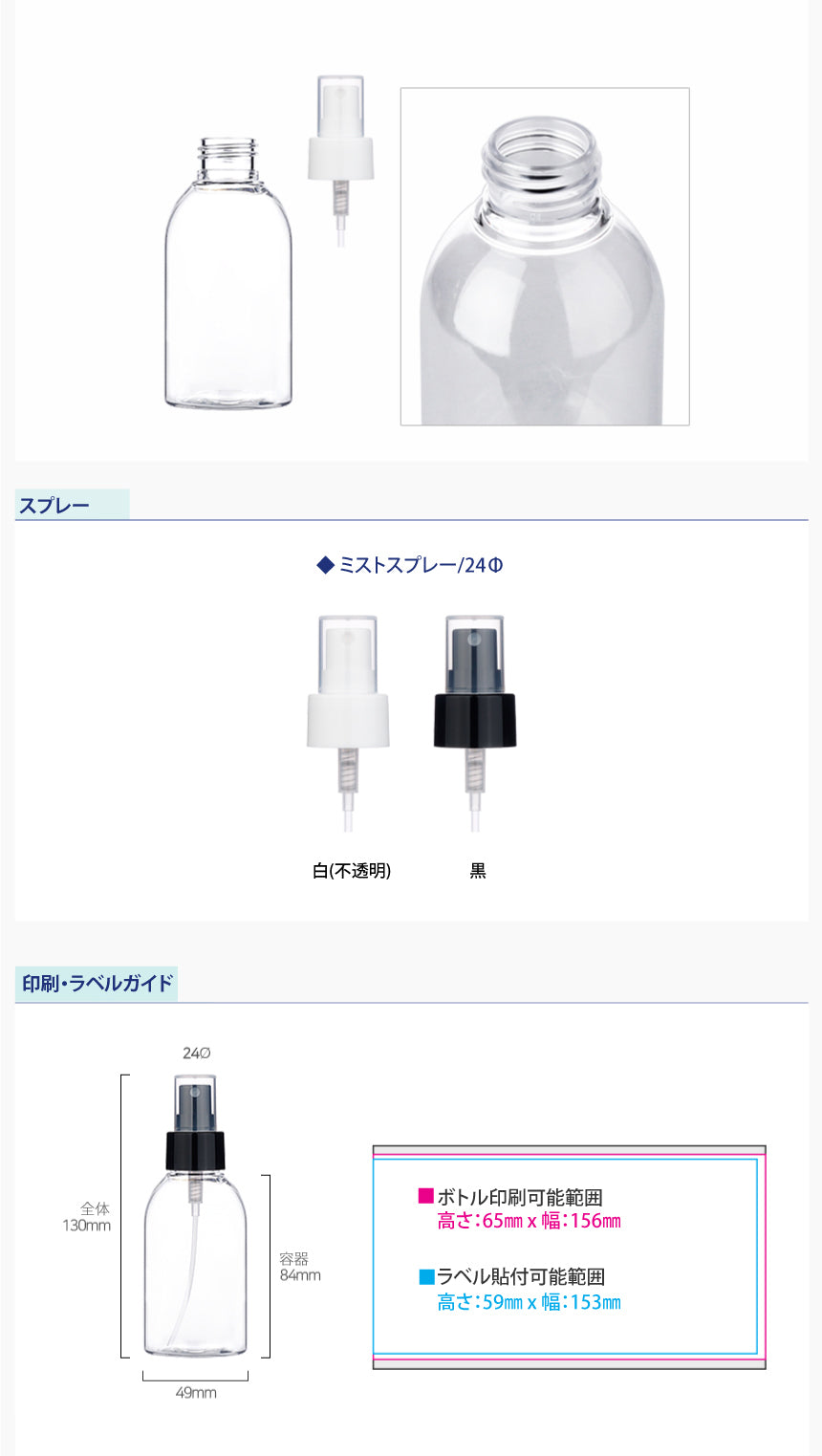 容量:120ml / 口径 : 24φ / 高さ:130mm / 直径 : 49mm