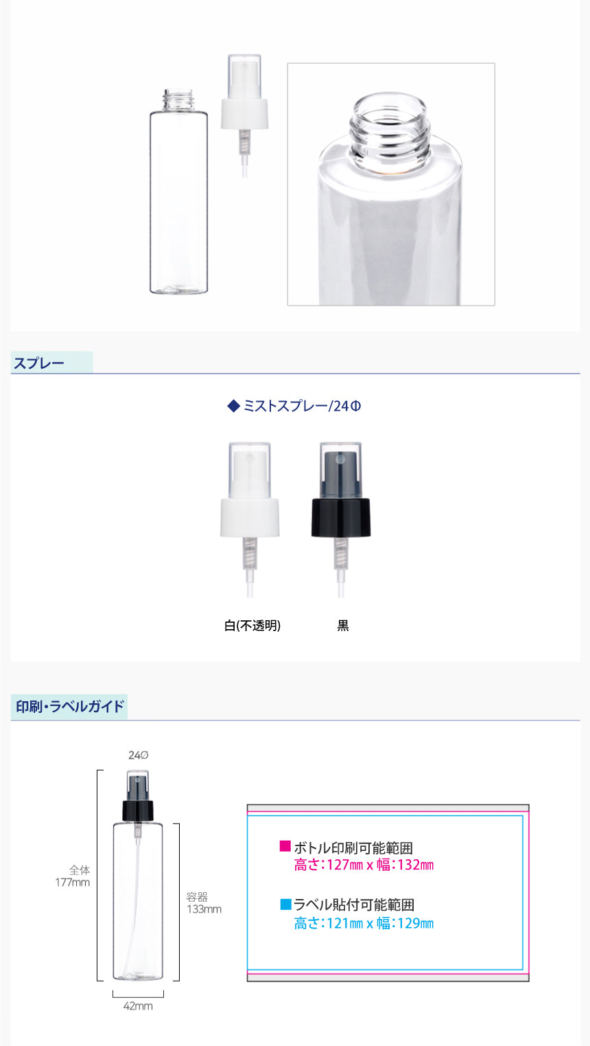 容量:150ml / 口径 : 24φ / 高さ:177mm / 直径 : 42mm