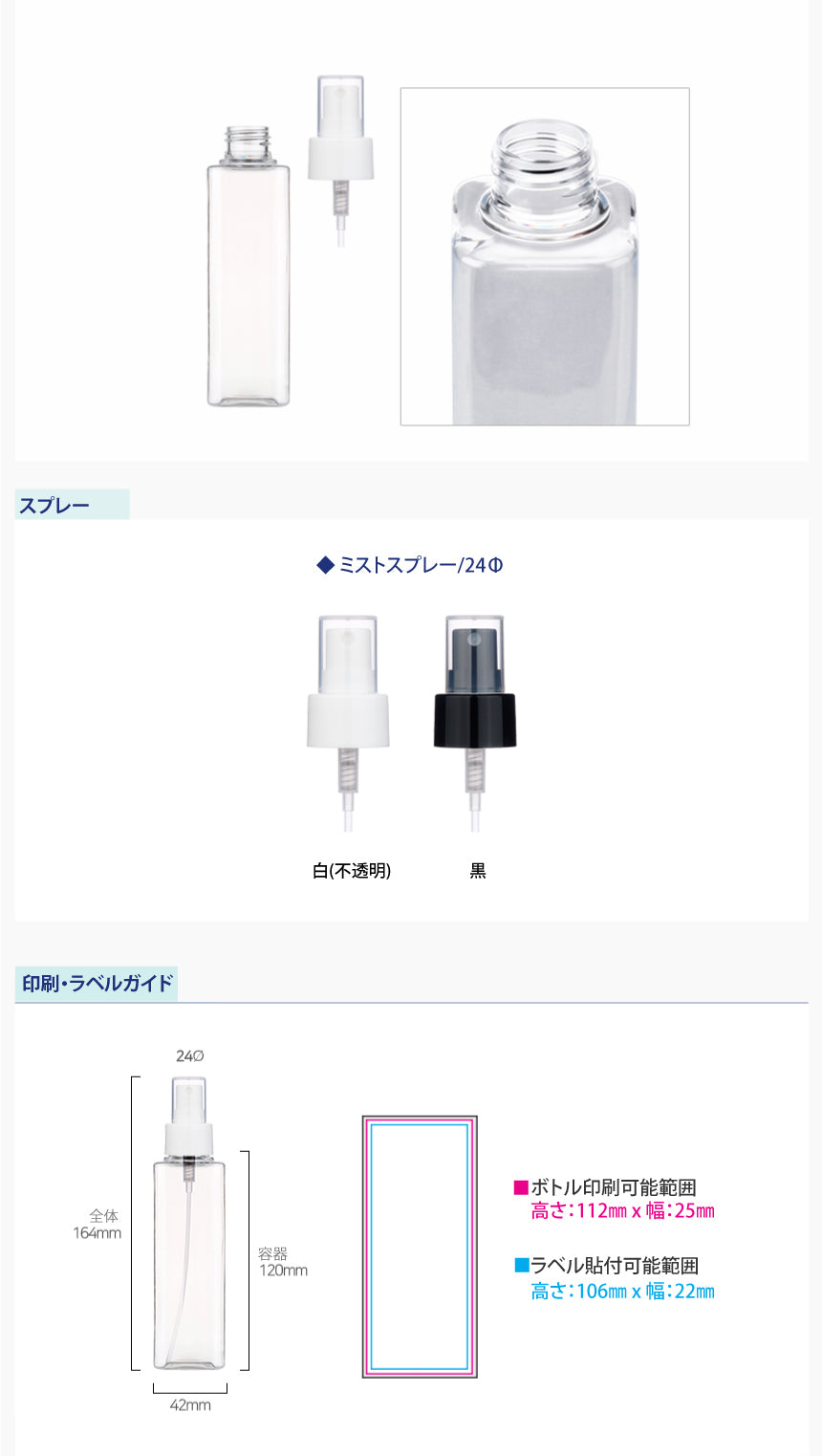 容量:150ml / 口径 : 24φ / 高さ:164mm / 直径 : 42mm