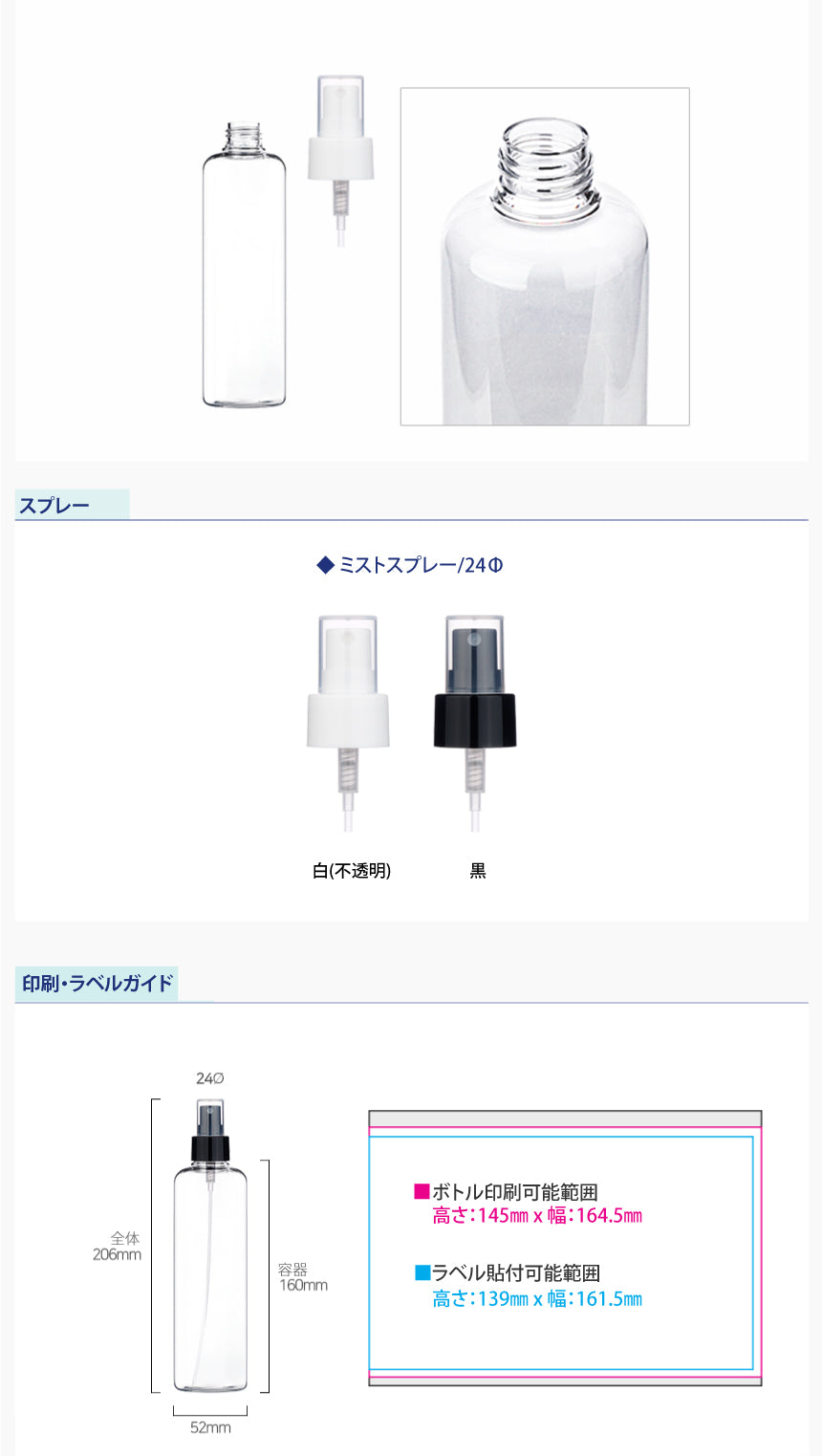 容量:300ml / 口径 : 24φ / 高さ:206mm / 直径 : 52mm
