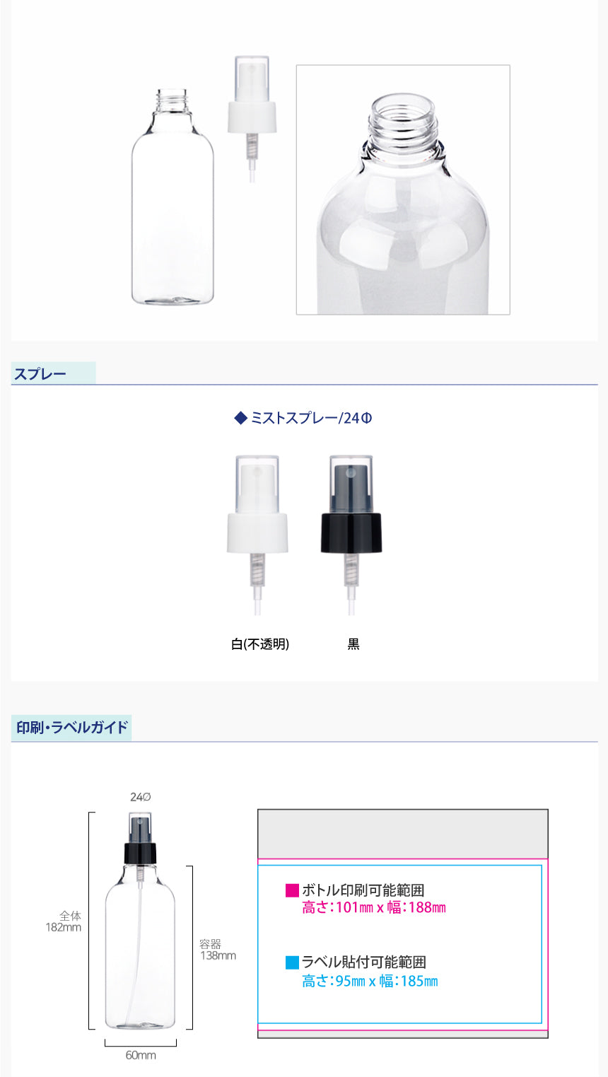 容量:300ml / 口径 : 24φ / 高さ:182mm / 直径 : 60mm