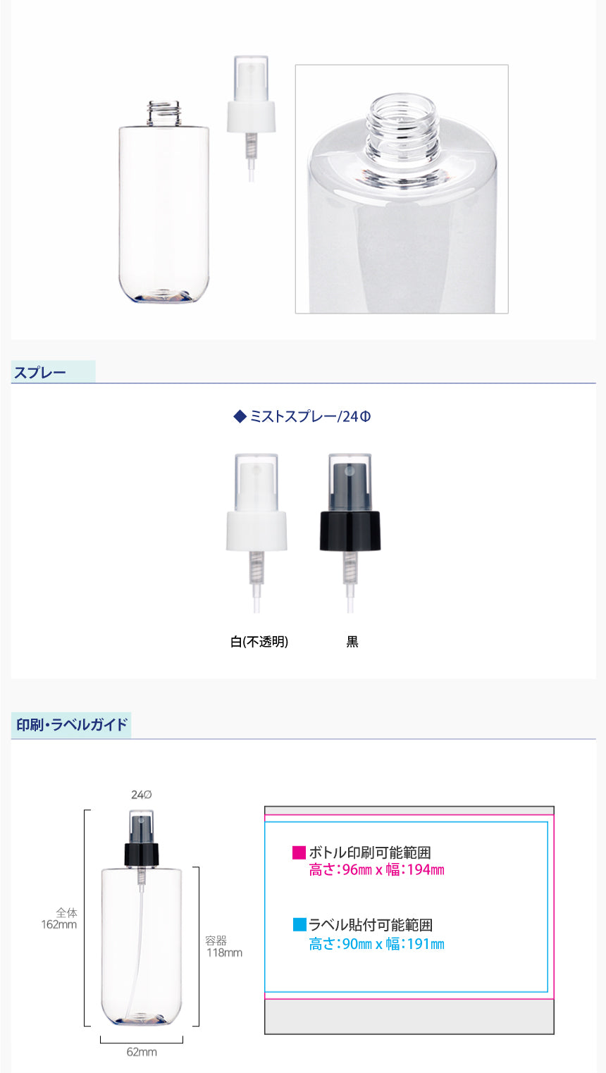 容量:300ml / 口径 : 24φ / 高さ:162mm / 直径 : 62mm