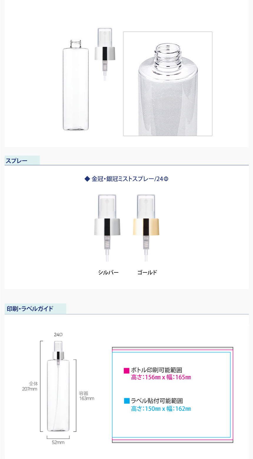 容量:300mⅼ / 口径:24φ / 直径:52㎜ / 高さ207㎜