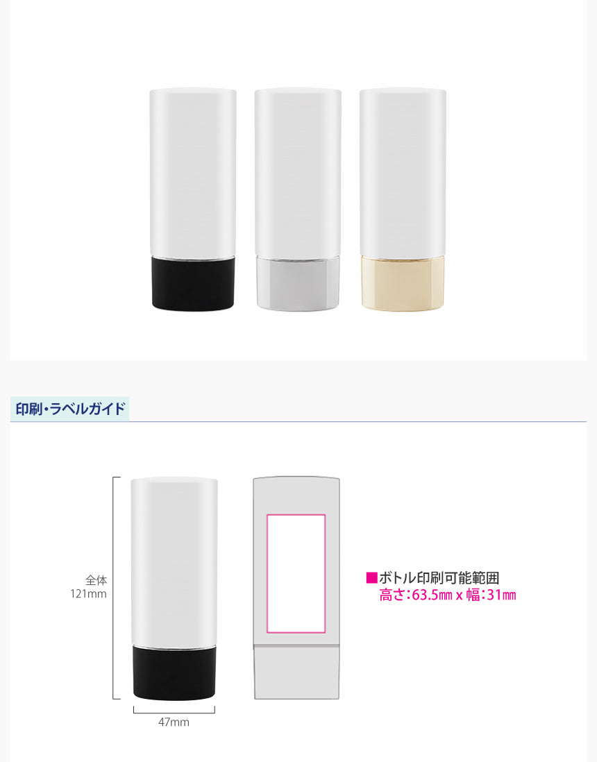 容量:60ml /充填口サイズ : 2φ / 高さ:121mm / 直径 :47×28mm