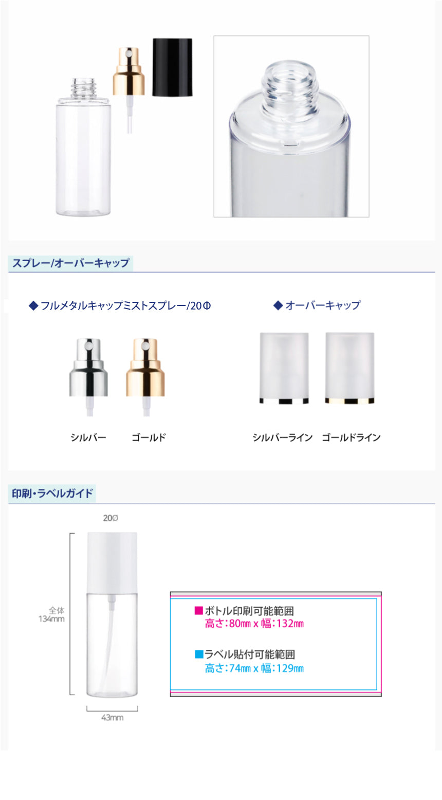 L) オーバーキャップフルメタルキャップミストスプレー(金銀ラインキャップ) OY100ml_PET