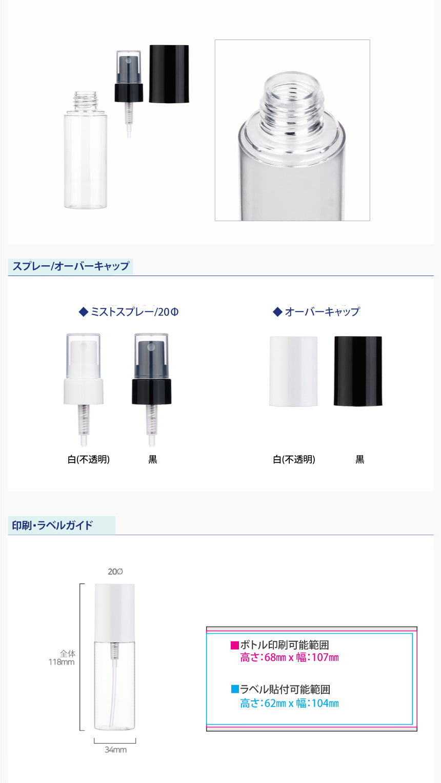 容量:50ml / 口径 : 20φ / 高さ:118mm / 直径 : 34mm