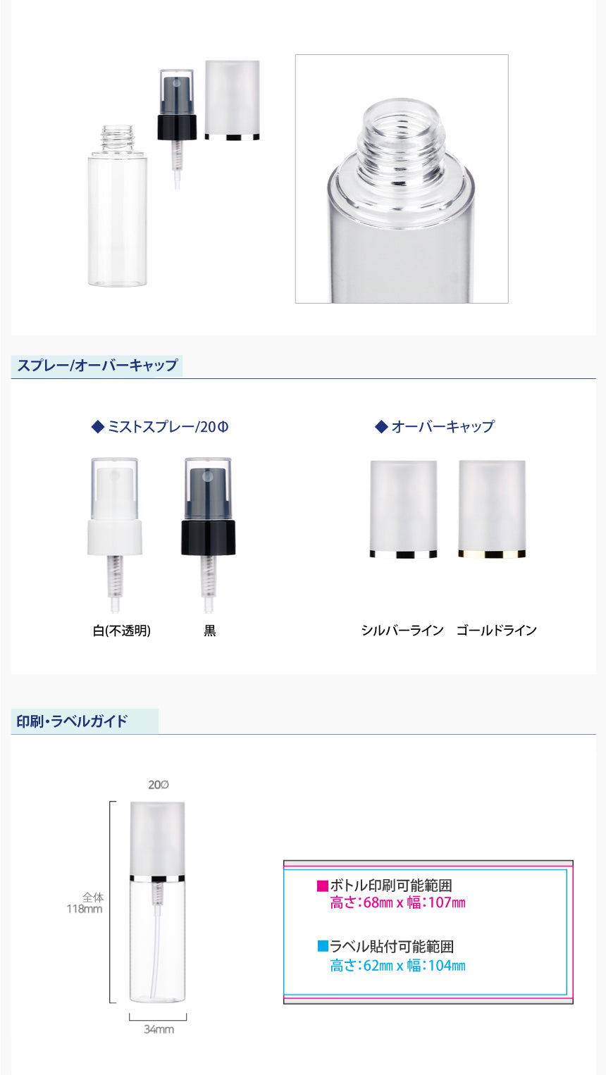 容量:50ml / 口径 : 20φ / 高さ:118mm / 直径 : 34mm