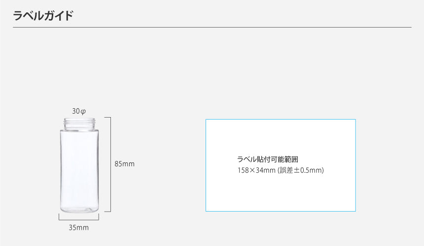 容量:50ml / 口径 : 30φ / 高さ:126mm / 直径 : 35mm
