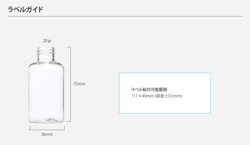 容量:50ml / 口径 : 20φ / 高さ:76mm / 直径 : 36mm