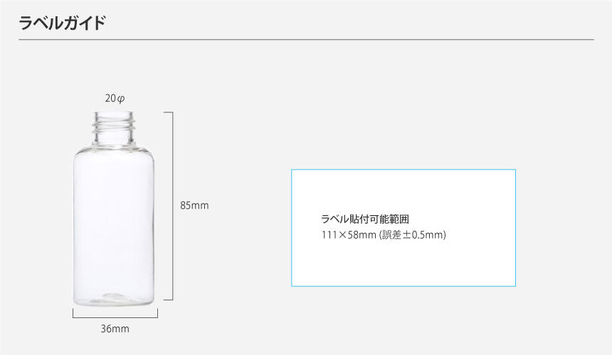 容量:60ml / 口径 : 20φ / 高さ:86mm / 直径 : 37mm