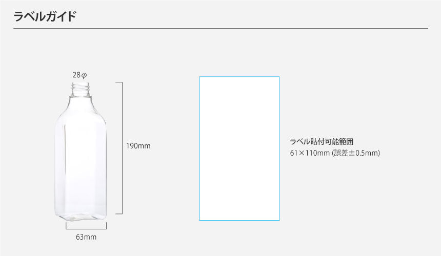 容量:500ml / 口径 : 28φ / 高さ:190mm / 幅 : 63mm