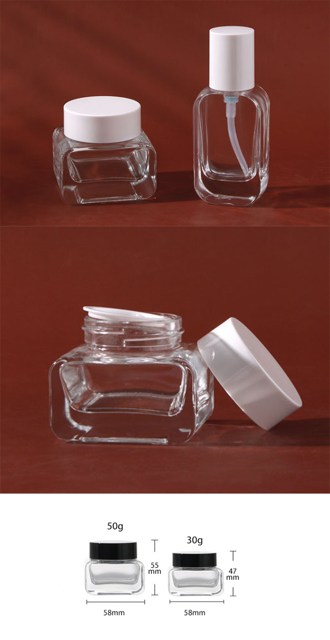 C) ガラスクリームジャー(透明・角丸平角) 30g