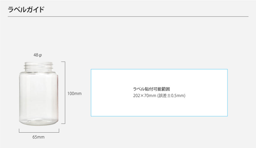 容量:250ml / 口径 : 48φ / 高さ:102.5mm / 直径 : 65mm
