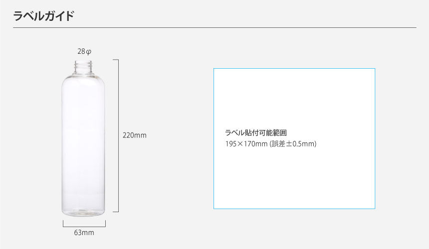 容量:540ml / 口径 : 28φ / 高さ:265mm / 直径 : 63mm