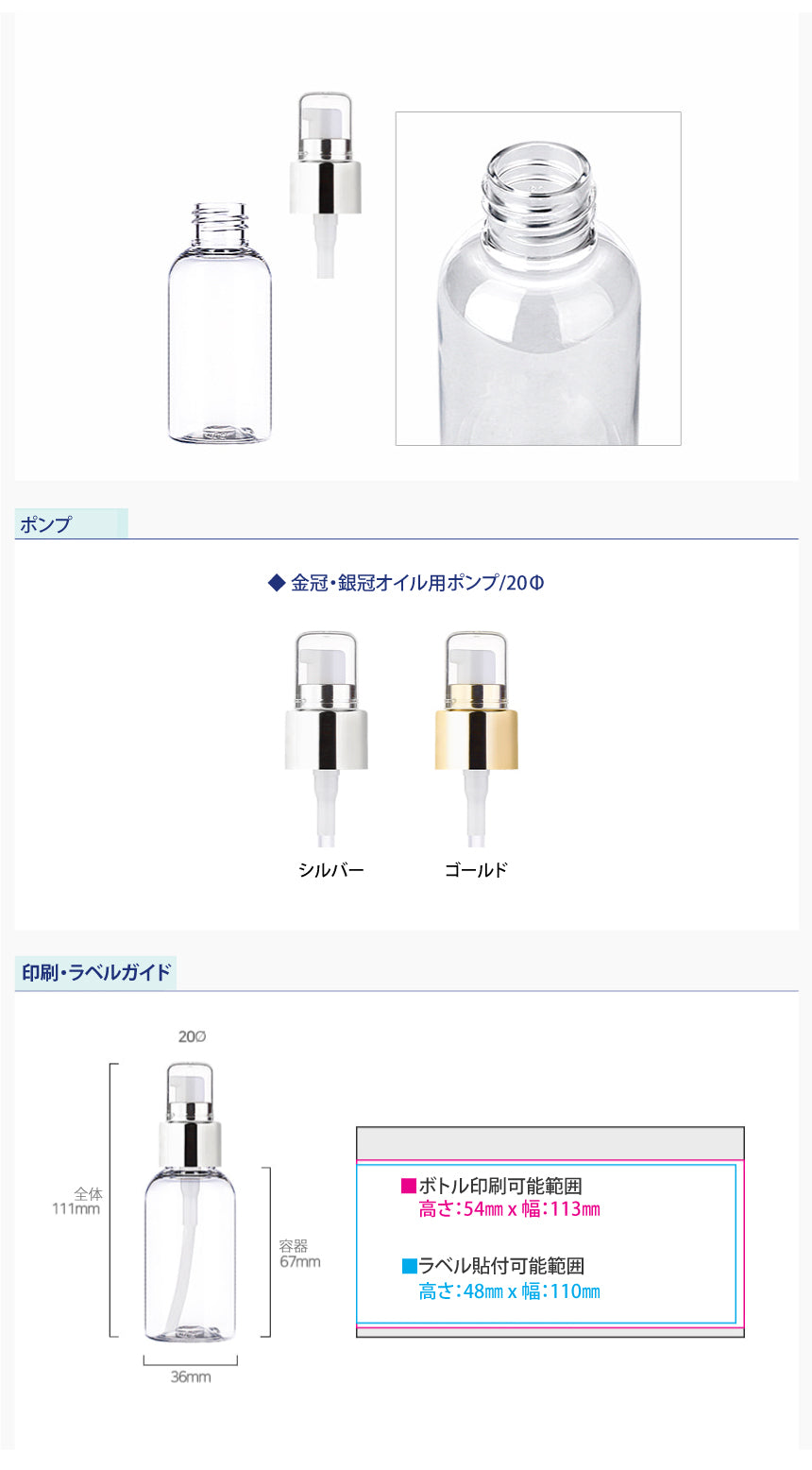容量:50ml / 口径 : 20φ / 高さ:111mm / 直径 : 36mm