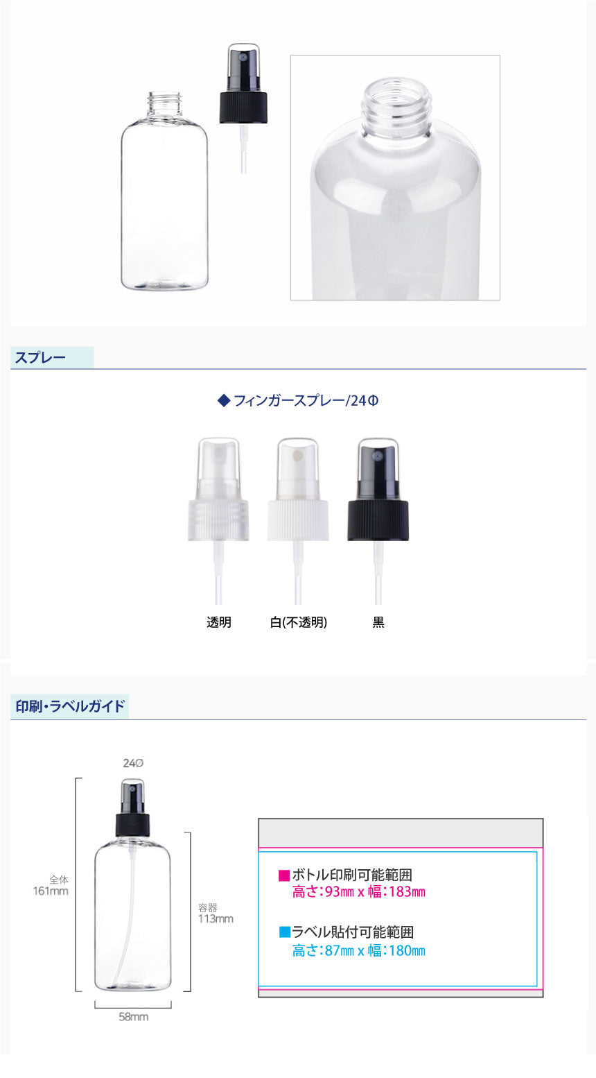 容量:250ml / 口径 : 24φ / 高さ:161mm / 直径 : 58mm
