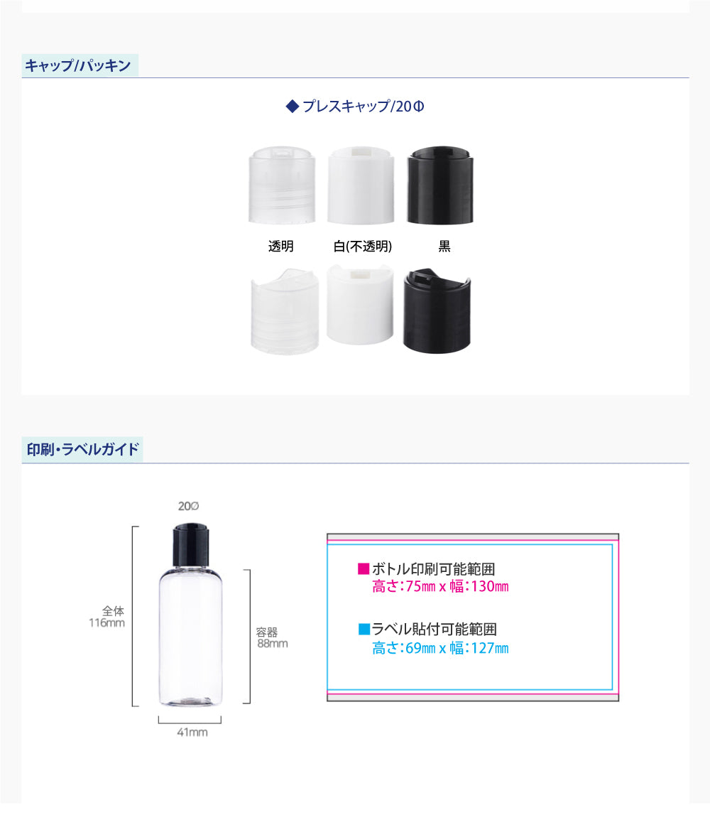 容量:100ml / 口径 : 20φ / 高さ:116mm / 直径 : 41mm