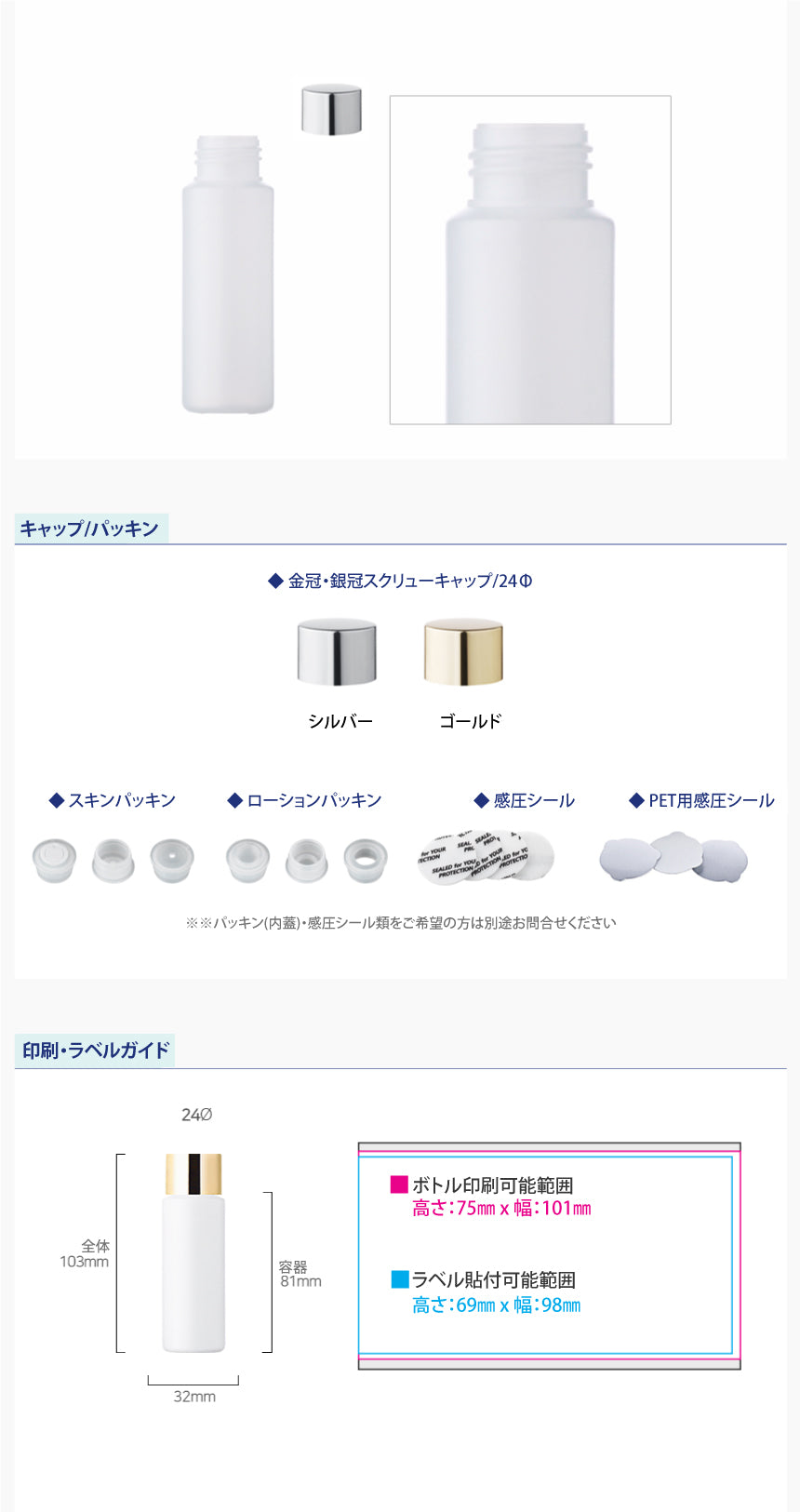容量:50ml / 口径 : 24φ / 高さ:103mm / 直径 : 32mm