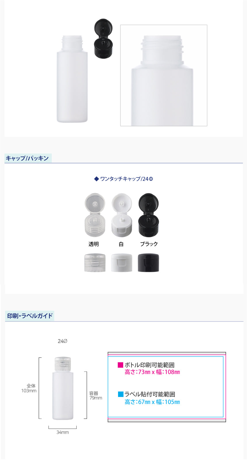 容量:60ml / 口径 : 24φ / 高さ:103mm / 直径 : 34mm