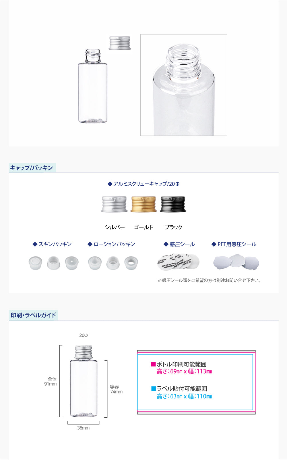 容量:60ml / 口径 : 20φ / 高さ:91mm / 直径 : 36mm