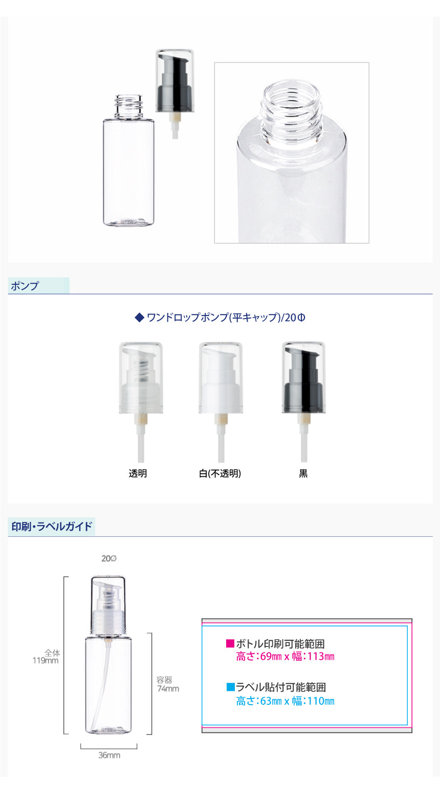 容量:60ml / 口径 : 20φ / 高さ:119mm / 直径 : 36mm