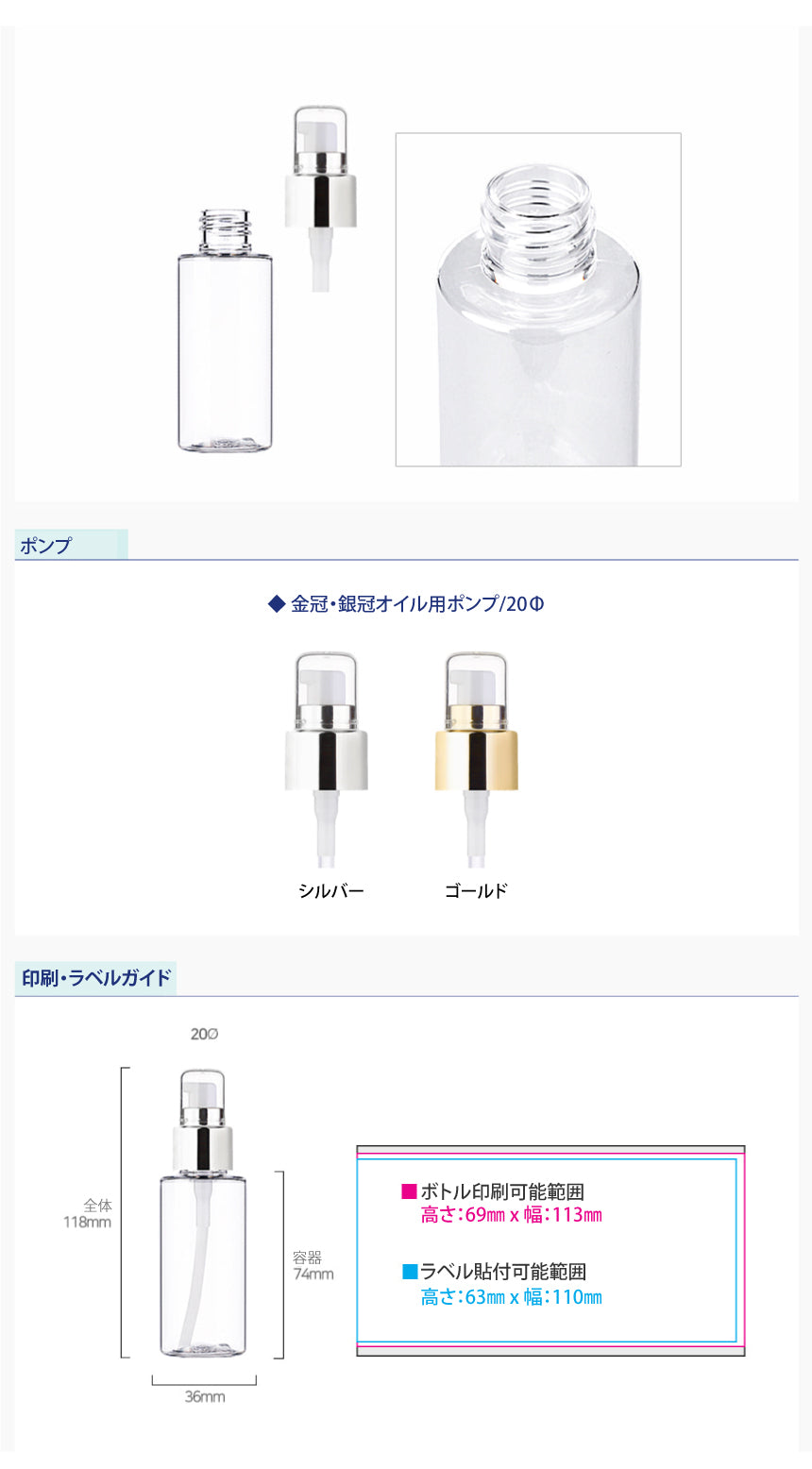 容量:60ml / 口径 : 20φ / 高さ:118mm / 直径 : 36mm