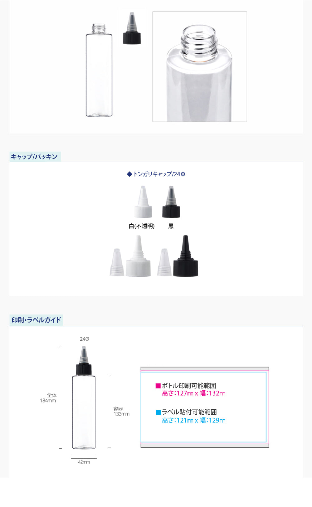 容量:150ml / 口径 : 24φ / 高さ:184mm / 直径 : 42mm