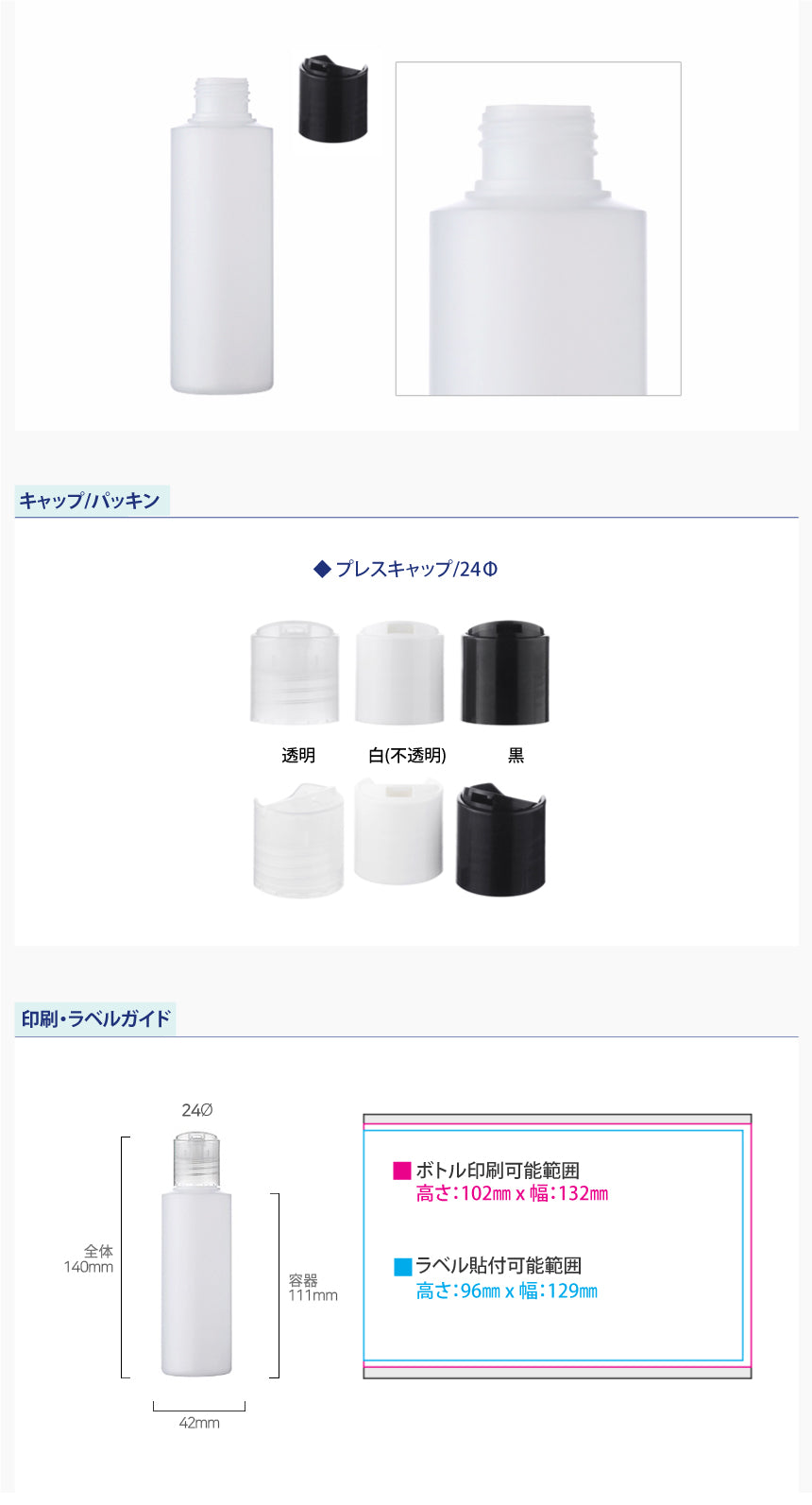 容量:120ml / 口径 : 24φ / 高さ:140mm / 直径 : 42mm