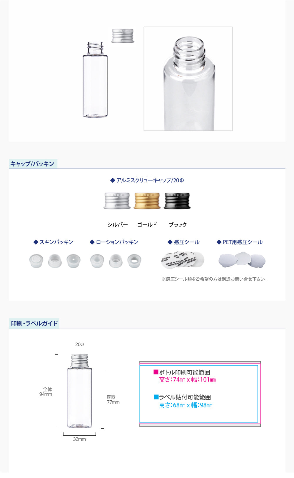 容量:50ml / 口径 : 20φ / 高さ:94mm / 直径 : 32mm