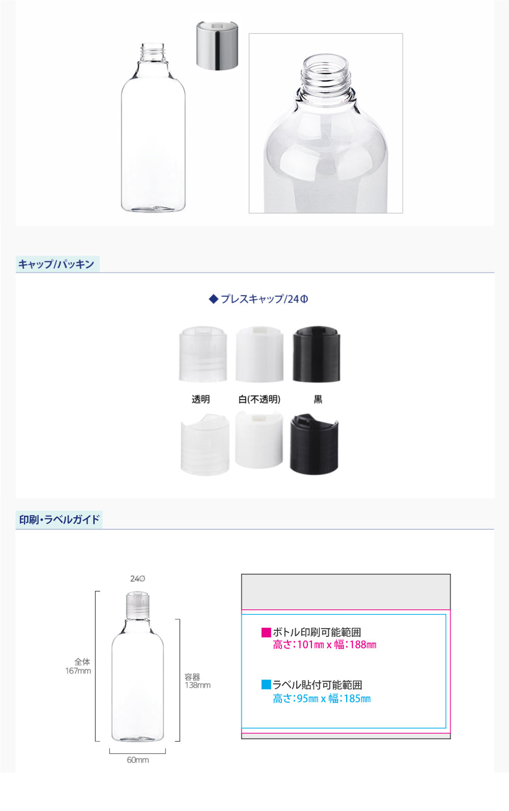 容量:300ml / 口径 : 24φ / 高さ:167mm / 直径 : 60mm
