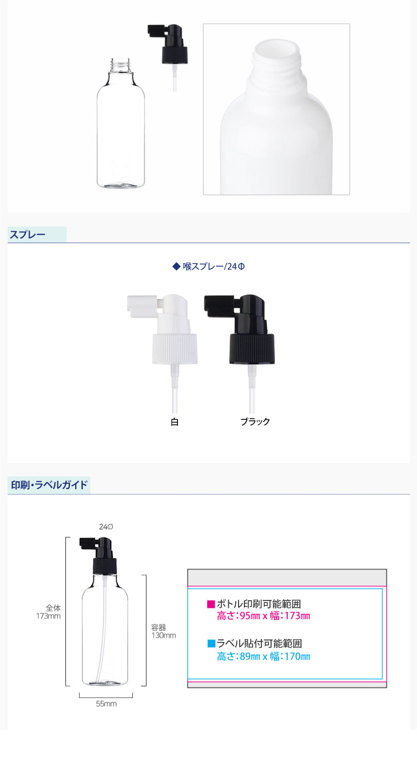容量:250ml / 口径 : 24φ / 高さ:173mm / 直径 : 55mm