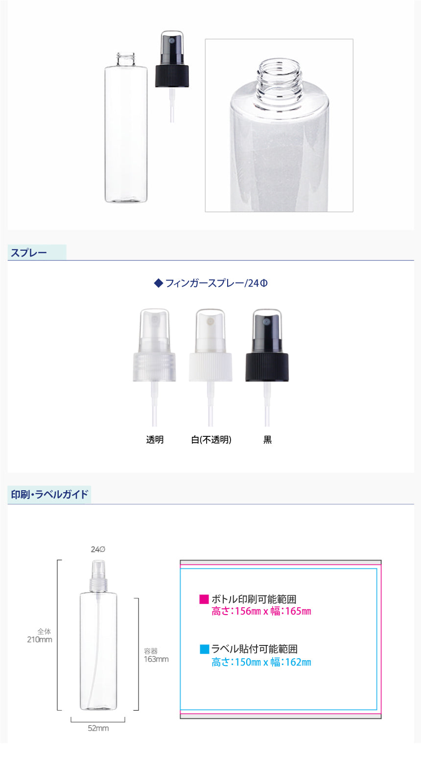 容量:300ml / 口径 : 24φ / 高さ:210mm / 直径 : 52mm