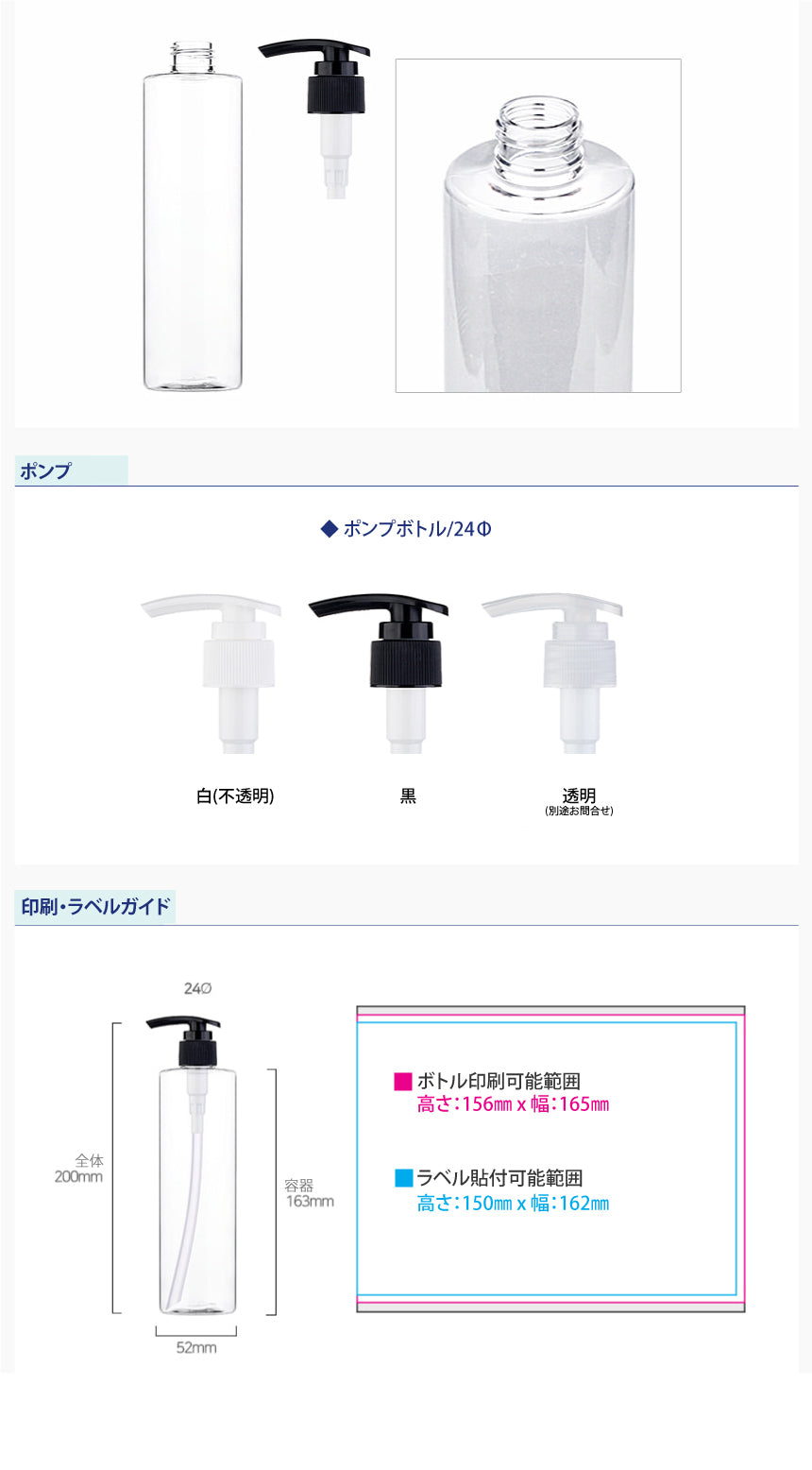 容量:300ml / 口径 : 24φ / 高さ:200mm / 直径 : 52mm