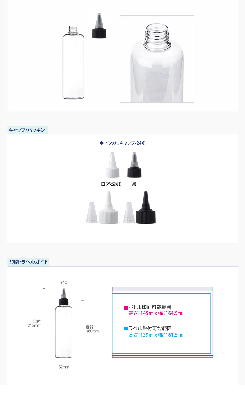 容量:300ml / 口径 : 24φ / 高さ:213mm / 直径 : 52mm